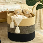 ⭐【100% NATURAL HANDMADE】:100% cotton rope,soft material without any chemicals woven basket. There are No plastics. No harsh chemicals. Our basket is soft and safe for kids and pets.our rope baskets are super durable and hold their shape well. they can be hand washed / air dried or put in your washer / dryer on delicate. ⭐【LARGE SIZE】: 18"x18"x16",which is a perfect storage basket in living room for blankets, throw pillows, comforter or cushions,blankets, baby diapers or toys. Use for toy storage orgainzation, toy basket, throw basket, laundry basket, etc. to keep your living space neat and tidy! ⭐【MULTI-PURPOSE STORAGE】:Decorative Basket is a new stylish alternative for all of your storage needs and it fits perfect with any kind of Home Decor. nothing will be lying around when you have our woven baskets in your home. Designed in subtle colors, this nursery organizer basket is too pretty to keep inside. ⭐【PORTABLE,STURDY&FOLDABLE】:Soft and firm basket, no collision scratches, perfect to accommodate baby's clothes and other toys in nursery. A great laundry storage basket that will last for years of continuous use. Rope will not separate, fray, or fall apart. We use highest grade materials and construction. You can feel and see the impressive difference the moment you receive it. ⭐【Note】: The basket comes in folded. It will return to its best shape if filling it up with towels or blankets. Fast removing the creases by ironing them. Washable: Hand washing or machine washing. When wash by machine, better place it in a laundry bag. Air-dry is better or you can dryer on a delicate cycle.
