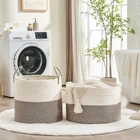 ⭐【100% NATURAL HANDMADE】:100% cotton rope,soft material without any chemicals woven basket. There are No plastics. No harsh chemicals. Our basket is soft and safe for kids and pets.our rope baskets are super durable and hold their shape well. they can be hand washed / air dried or put in your washer / dryer on delicate. ⭐【LARGE SIZE】: 20"x20"x13",which is a perfect storage basket in living room for blankets, throw pillows, comforter or cushions,blankets, baby diapers or toys. Use for toy storage organization, toy basket, throw basket, laundry basket, etc. to keep your living space neat and tidy! ⭐【MULTI-PURPOSE STORAGE】:Decorative Basket is a new stylish alternative for all of your storage needs and it fits perfect with any kind of Home Decor. nothing will be lying around when you have our woven baskets in your home. Designed in subtle colors, this nursery organizer basket is too pretty to keep inside. ⭐【PORTABLE,STURDY&FOLDABLE】:Soft and firm basket, no collision scratches, perfect to accommodate baby's clothes and other toys in nursery. A great laundry storage basket that will last for years of continuous use. Rope will not separate, fray, or fall apart. We use highest grade materials and construction. You can feel and see the impressive difference the moment you receive it. ⭐【Note】: The basket comes in folded. It will return to its best shape if filling it up with towels or blankets. Fast removing the creases by ironing them. Washable: Hand washing or machine washing. When wash by machine, better place it in a laundry bag. Air-dry is better or you can dryer on a delicate cycle.