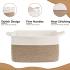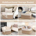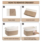 Large Capacity: 21.6"L x 14.9"W x 11.8"H, this large rectangle basket with 63L capacity is perfect for storing throw blankets, pillow, cushions, clothes, towels and stuffed animals. Not only that, it can also add a nice style to your living room, bedroom, laundry room and nursery Sturdy Handle Design: The two built-in handles are sturdy, easy to carry or move and allow your babies to pack up their toys alone Soft Material: The woven basket is made of cotton rope, which is soft yet holds its shape well. No need to worry about scratching clothes or hurting skin, suitable for families with babies or pets Perfect Gift Choice: This decorative basket with unique color design blend into any laundry room, and match any bedroom, nursery or living room space well. This will be ideal as a gift basket for babies, kids, moms even pets, and it can be folded or stored at any time to save space NOTE: These cotton rope baskets are folded when shipping, but it will turn back to its elegant shape if you fill it with some towels or blankets, and the iron can remove the creases more quickly. The large blanket basket can be washed by hand or machine, just put it into a laundry bag while machine washing