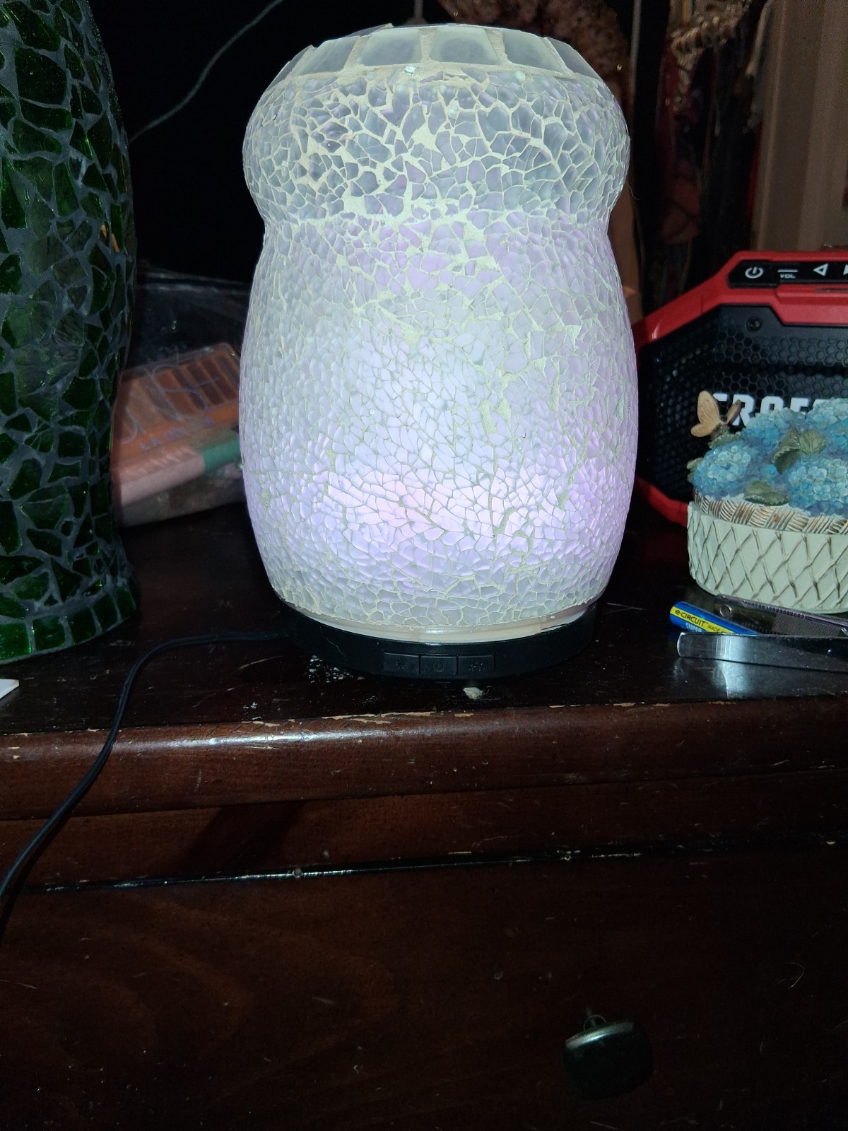 This essential oil diffuser is a large, modern design that changes lights in 5 different colors. It is a wall plug-in container made of stone in a matte finish. The diffuser is intended for aromatherapy use in the living room, designed by Better Homes and Gardens. It has a volume of 10 fl oz and a burning time of up to 2 hours, providing a calming effect by reducing emotional stress and anxiety. Perfect for adults looking to enhance their home fragrance experience with a sleek and stylish addition to their space.