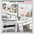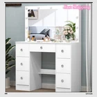 Features: Plenty of storage space: the dresser is compact but with enough storage space, there are 7 drawers in total: 1 large drawer and 6 smaller drawers. Adjustable Led Bulbs: 11 LED bulbs have a total of 3 light modes: warm, natural and cool, the brightness can be adjusted to meet your various needs, and can also be converted into an indoor ambient light or a face filler light for makeup. Stylish and Elegant Design: the overall white dresser with crystal knob is both stylish and modern, and the white color is more elegant. Rectangular dresser overall dimensions 100cm (L) x 40cm (W) x 140cm (H) enough to fit in most spaces. USES QUALITY MATERIALS WITH HIGHER CRAFTING CRAFT: Selected top particle board material with higher density, the load bearing board is thickened to 15mm, which is more durable and not easy to deform than other boards with lower thickness. We are committed to providing you with better quality goods and services. PERFECT GIFT CHOICE: No girl will refuse this elegant and practical dresser! Whether it's birthday, Valentine's Day, Mother's Day or Christmas, this charming dresser is a great gift for girlfriends, wives, mothers and daughters. EASY INSTALLATION: This dresser comes with detailed step-by-step instructions provided by us, and each kit comes with label numbers and a detailed installation video to help you install it quickly. If you have any questions about the product, delivery, installation, etc, please feel free to contact us by email. Specifications: Overall Dimensions: 39.4 x 15.7 x 55.2 inch / 100 x 40 x 140 cm Mirror Dimensions: 39.4 x 23.6 inch / 100 x 60 cm Small drawer size: 25 x 22 cm / 9.8 x 8.7 inch Large drawer size: 47 x 15 cm / 18.5 x 6 inch Color: White Material: MDF Product care instructions: wipe with a damp rag Features: three-color light, adjustable brightness Package Includes: 1x Dressing Table ( No Stool ) 1x Instruction Pay Attentions: Installation Attention: With detailed installation instructions and hardware tools, each pieces has a tagnumber, follow the steps of enclosed instruction Parts Attention: Recommended to lay out all these parts according to the number first, so that it willsave time when they are put together, need to pay attention to the direction of eachboard Mirror Attention: Don't worry about the broken mirror or missing parts. lf this happens, pleasecommunicate with us ASAP, we will reissue it for you immediately