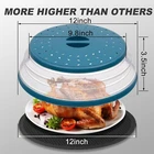 12" Microwave Cover and 12" Mat:Mat as bowl Holder,cover as splatter guard,not only keep your microwave clean but also can prevent burns.they are the perfect match in a home microwave Easy Handshake Folding Microwave Cover:The new generation microven serving covers of finger grip on top is deeper,easy to shake hands,and the high quality silicone is easier to fold,this item replaced a solid plastic non collapsible microwave splatter guard Cover Easy To Use And Storage:Microwave splatter guard diameter is 12 inchs,suitable for plates up to 11.8 inches,it fits most bowls and plates,the height of the food cover can be freely changed from 0.8 to 3.6 inch.it's easily for storage Thickened Multifunctional Mat:2.2mm silicone pot mat has better heat resistance,honeycomb textures and edges make it easier to grab.use as a baking mat,microwave pads,placemat,drying mat,hot pad,pot holder,splatter guard,trivet,food cover,utensil rest,jar opener,and more Premium Silicone Mat:BPA free,non stick,heat resistant to 240 degrees celsius.dishwasher safe,the multi purpose mat measures 12 inchs diameter and fits standard glass turntables,perfect for use as a non stick base or splatter guard to confine messes in the microwave