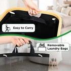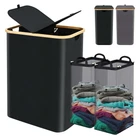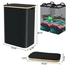 This 160L Laundry Hamper with Lid is suitable for a variety of use scenarios, the hamper takes up little space but has a 160L capacity to store your week's worth of change of clothes. The hamper is made of thickened oxford fabric to make it has longer strength and better resistance. Double laundry bag separation allows you to store clothes and other classified items in separate categories, such as dark and light clothes, also they can be easily removed and carried to wash clothes. Large Capacity Laundry Hamper:This large laundry hamper (22.25"L x 14.76"W x 29.13"H) offers a generous 160L of storage for your dirty clothes hamper needs.Its versatility extends beyond a simple clothes hamper. It's perfect for laundry room organization, or even storing toys or towels! Laundry Basket with Lid & Bamboo Handles:The lid on the top of the hamper keeps dust out and prevent the spread of peculiar smell. There are two bamboo handles on the side of the laundry hamper which makes it easy for you to move it to laundry room, bedroom or child's room. Waterproof and Durable: Laundry hamper with lid is made of high quality thickened linen fabric, which is lightweight and easy to carry. The top uses an eco-friendly bamboo frame and there are 4 sturdy support rods inside to make the laundry hamper stronger and will not be deformed by excessive clothing. A stylish gray laundry basket with lid will look great in any style of room.