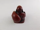 Bring home the positive energy with this laughing Buddha miniature figurine. Made of high-quality resin, this small 4.5cm sculpture features intricate carvings and a red/brown finish. The sitting Buddha is perfect for those who want to incorporate Feng Shui in their home decor or simply add an Oriental touch. Suitable for both teens and adults, this laughing Buddha mini statue is an excellent addition to any collection of sculptures or figurines. Its small size makes it easy to display on a shelf, desk or table. Get yours today and bring a smile to your face every time you see it.