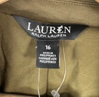 New with Tag Smooth ponte and a tailored silhouette define the smart sophistication of this straight-cut blazer, which is characterized by iconic Lauren details, including signature crest-embossed buttons and a regal “LRL” logo patch at the chest. Straight fit. Intended to hit at the hip. US size Petite 8 has a 25.75" body length and a 31.75" sleeve length. Body length and sleeve length are taken from the center back of the neck. Sleeve length changes 0.25" between sizes. Notch lapels. Two-button silhouette. Signature crest-embossed buttons. Long sleeves with four-button cuffs. Shoulder pads. Two front waist flapped patch pockets. Left chest patch pocket. Metallic script "LRL" logo patch with a crown embroidered at the pocket Flat lay: pit to pit 21" Length 29" Material: Shell: viscose, nylon, elastane. Lining: polyester, elastane. Academia, preppy, embroidered, crest logo, knit, stretchy, designer, elegant, intellectual, tailored, work wear, office, classic, minimalist, structured, muted, refined, 90s, Y2K, cocktail PLEASE check all flat lay measurements and listings carefully BEFORE PURCHASE!I put in a lot of work into hand measuring and researching each items as best as I can! Thank you so much for your consideration! If you are not too familiar with flat lay measurements, I recommend taking a measurement of your own clothes that you feel comfortable and compare with the measurement I provide. We all don't like returns and let's work together to minimize! Please note that RETURNS ARE NOT ACCEPTED FOR NEW WITH TAG OR NEW WITHOUT TAG ITEMS!