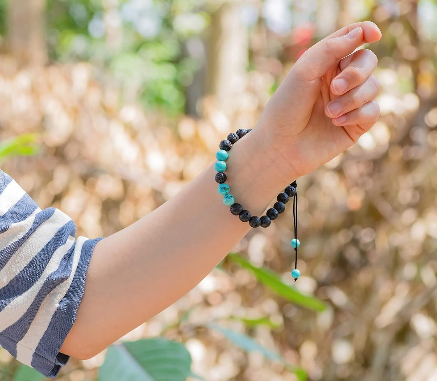 Love this stylish and functional diffuser bracelet! The adjustable rope fits any wrist comfortably, and the porous lava stones hold essential oils perfectly. The turquoise accents add a beautiful pop of color—great for aromatherapy on the go. Fast shipping too! Highly recommend.