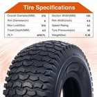 Lawn Mower Tires 15x6.00-6 15x6x6 4 PR Garden Tractor Turf Tire Heavy Duty SET 2 15x6-6 Lawn Mower Tire Specification: TT/TL: TL Tire Aspect Ratio: 75% Ply Rating: 4PR Tire Overall Diameter:15'' Tire Section Width:6'' Rim Diameter: 6'' Rim Width: 4.5'' Tread Depth: 0.18'' Load-index: 61 Tyre Pressure(psi): 30 Speed Rating: A3 Load Capacity: 570lbs Weight: 5.3lbs Features: 15x6-6 Turf Tires – Ideal for Lawn & Garden Equipment Universal Fit Design The 15x6-6 tire is designed to fit most lawn mowers, small tractors, and garden equipment, offering a versatile replacement solution for various models. Durable Construction Made from high-quality rubber, this tire is built for exceptional wear resistance and puncture protection, ensuring long-lasting performance on various terrains. Turf-Friendly Tread Design The specially designed low-impact tread pattern minimizes damage to lawns while providing excellent traction and stability, ensuring efficient operation in grass maintenance tasks. Easy Installation Standard 6-inch rim diameter ensures quick and hassle-free installation. No specialized tools are required, making it convenient for DIY users. Multi-Purpose Application Perfect for a variety of applications, from residential gardening to professional lawn maintenance and agricultural equipment , this tire meets the needs of diverse working environments. Package Include: 2x Lawn Mower Tires 15x6-6 Tires only (rim/wheel not included) Payment Delivery details Terms of sales About us Contact us Payment 1.We accept various payment methods. Paypal、Debit card、Apple Pay、Google Pay ect. Delivery details 1. Order will be shipped within 1-2 business day after payment confirmed. 2. We will arrange shipment for you from US warehouse via UPS\Fedex. 3. Delivery time varies from 2 to 6 business days. 4. We will ship to your eBay address. Please check your address at checkout. We will not responsible for wrong or undeliverable addresses. Terms of sales Buyer Guarantee We assure you that we are a honest and super reliable seller on ebay, any problems can be solved in a satisfing way for you and any loss will not be brought to you as long as you will kindly contact us via ebay message or your private email. Please kindly contact us firstly if your purchasing is in trouble before leaving any bad feedback including neutral and negative feedback and leaving 3 stars or less stars to me on 4 criteria. Return Policy Please return the item within 30 days after receiving if you are not happy with your purchasing.All returns are expected to be in original conditions, please email us first for return address and instructions. About us 1. We are specialized dealer of ATV UTV SXS Premium Tires for more than 30 years. 2. We have office and warehouse in US to ensure fast shipment and after-sale service. Contact us 1. Our customer-oriented service strives for positive feedbacks with all 5 star selling ratings. 2. Please feel free to contact us via eBay message once you have any question before you giving us negative feedback or open case. 3.We will reply in 24 business hours. 4. Business time: GMT8 (9:00-18:00) from Monday to Friday.