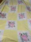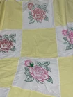 Lemon Butter Yellow & White handmade quilt Painted Roses Sheet type material w/batting Tie quilt Light/med weight Imperfect: small stains & no type stain on back. See pictures
