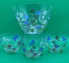 The Lenox Butterflies and Blossoms Salad Glass Bowl set includes a 9-inch hand-painted signed by artist salad bowl along with three additional 5.5” serving bowls. The design features a multicolor pattern of flowers and butterflies, creating a vibrant and elegant look. Made of glass, this round bowl set is perfect for serving salads or other dishes, adding a touch of beauty to any dining table. The hand-painted details give the set a unique and artistic appeal, making it a charming addition to any collection.