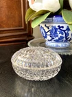 This Lenox Crystal Vintage Oval Trinket Jewelry Box from the 1980s radiates elegance and sophistication. Beautiful cut crystal piece that exudes lots of sparkle. The oval shape adds a touch of classic charm to this timeless piece, making it a perfect accessory for storing jewelry or small trinkets. The Lenox brand ensures high-quality craftsmanship and attention to detail, making this jewelry/trinket box a beautiful and functional addition to any collection or decor. Perfect accessory for a vanity table, bedside table or bathroom counter. A lovely way to keep your jewelry contained until ready to wear again.