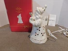 This lit figure measures 8-1/4" tall, 4-3/4" in diameter. It has a removable light cord for storage and an on/off switch. Works.