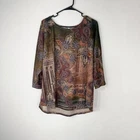 Leo and Nicole Women's Stretch Knit Paisley Patrol Print Top 1X Brown