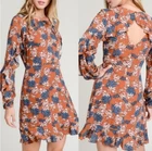 Les Lis Brown floral Long Sleeve Open Back Fall Dress Large. Condition is Pre-owned. Shipped with USPS Ground Advantage.