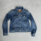 Levi Jacket Womens Blue Denim Trucker Med Wash Long Sleeve Cotton Stretch Sz L