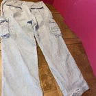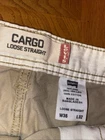The Levi's Cargo 36/32 Pants are a pair of men's regular fit pants in a beige color. They feature a solid pattern and are made of cotton fabric, making them comfortable and machine washable for easy care. These pants have a zip closure and are designed with a cargo style, adding a practical and stylish touch to the classic Levi's brand. Perfect for casual wear, these pants offer both functionality and a trendy look for everyday use. See photos for flaws