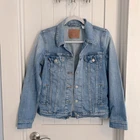 Levi’s Distressed Denim Jean Trucker Jacker Size Medium Measurements in photos Cotton Elastane Excellent condition