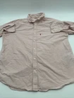 This is a Levi's men's button-up shirt in size XL, featuring a solid pink color. It has long sleeves, a collared neckline, and a regular fit. Made of cotton in India, this classic shirt is easy to care for and has a button closure. *Check the images above for the flaws and measurements of the item.