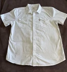 Elevate your wardrobe with this Levi's men's button-up shirt in a classic white color. Made with 100% cotton material, this shirt features a solid pattern, short sleeves, and a spread collar. The shirt is perfect for both casual and workwear occasions and is available in size 2XL. The shirt has a regular fit and is machine washable for easy maintenance. It also includes pockets and accents such as buttons and the Levi's logo. The shirt is suitable for various themes such as grunge, cowboy, classic, retro, and preppy. This Levi's button-up shirt is a must-have for any man's wardrobe.