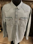 Levi’s Mens Sleeve Pearl Snap The Barstow Western Denim Light Wash Blue. Condition is Pre-owned. Shipped with USPS Ground Advantage.