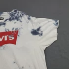 Levis Shirt Mens L Short Sleeve Spell Out Logo Knit Pullover Tie Dye White Blue