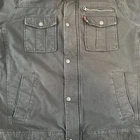 Levi's Trucker Jacket 5 Pocket Black Chore Barn Coat Fall Christmas Men's Size Large Approximate Measurements (inches): Length: 27" Pit to Pit: 24" Sleeve: 26" Shoulder: 18.5" Cuff: 4.75" - 5.5" 100% Cotton shell 100% Polyester lining & filler Machine Washable This jacket is medium to heavy weight, weighing ~2 lbs 8oz itself. Features: - 5 outer pockets; 1 zippered chest pocket, 2 snap closure chest pockets & 2 slip side pockets. - 1 interior chest pocket, left side. - Full zip closure w/ additional snap closure. - Quilted liner Pre-loved & in great condition! Some minimal wear on surface of zipper pull. See photos for close ups & measurements. Freshly laundered & ready to ship!