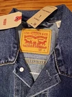 Pattern: Solid Vintage: Yes Accents: Embroidered Department: Men Theme: Beer Size: L Style: trucker Features: Collared, Limited Edition, Pockets, workwear Lining Material: no lining Color: Blue gtin13: Does not apply Closure: Button Type: Jacket Size Type: Regular UPC: Does not apply Country/Region of Manufacture: Bangladesh Brand: Levi's Fabric Type: Denim Outer Shell Material: Cotton Jacket/Coat Length: Short