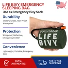 Polyethylene Imported Ultimate Survival Companion: The Go Time Gear Life Bivy Sack is an indispensable component of your survival kit, ideal for your go bag or survival bag. Utilize it as an emergency sleeping bag for survival shelter or a waterproof bivy when camping, hiking, or facing unexpected winter weather Built For Endurance: Our emergency sleeping bags for survival are crafted from military-grade, tear-proof PET Mylar, making it windproof and waterproof. This life bivy emergency sleeping bag is designed to reflect 90% of your body heat, it is an essential survival sleeping bag for all seasons, ensuring warmth and protection during winter emergencies Stay Safe And Warm: In need of an emergency shelter? Our survival bivy is your reliable choice. It shields you from rain, wind, and snow, and can be used as a liner in your bivvy sleeping bag for additional warmth during cold winter nights, making it vital survival gear and supplies Compact And Powerful: Weighing just 4.1 oz, this thermal sleeping bag bivy is remarkably compact. This emergency bivy sack fits neatly into a 4" x 3" stuff sack and includes a 120-decibel whistle, ideal for signaling rescuers up to a mile away during emergencies, making it a valuable addition to your go bag emergency backpack Trusted Go Time Gear: Our camping bivy sacks are designed for those in need of reliable zombie survival gear. Whether prepping a car emergency bag, life tent for hiking, or a bug out bag, our bivy gear ensures you are covered. Our emergency blankets for survival are designed in the USA Product Description The video showcases the product in use. The video guides you through product setup. The video compares multiple products. The video shows the product being unpacked. Paracord Drawstring & Sack Every Life Bivy comes packed in a 4x3in (10.16 x 7.62cm) stuff sack. Use the paracord drawstring to start fires, or repair gear Engineered for Warmth The Go Time Gear Life Bivy is made from PET mylar with a reflective interior that sends 90% of your body heat back to you. 120 Decibel Survival Whistle The drawstring features a detachable survival whistle capable of reaching 120 decibels to alert rescuers up to a full mile away. Repair Gear & Start Fire Use the threads inside the drawstring can be used to repair gear or as kindling to help start a fire. Add to Cart Add to Cart Add to Cart Add to Cart Customer Reviews 4.6 out of 5 stars 11,131 4.7 out of 5 stars 2,749 4.7 out of 5 stars 272 4.7 out of 5 stars 55 4.7 out of 5 stars 199 Price $19.95 $ 19 . 95 $19.95 $ 19 . 95 — $17.99 $ 17 . 99 $14.49 $ 14 . 49 Size 7.8 ft x 4.8 ft 3 ft x 7 ft 57 in x 40 in 40 in x 40 in 63 in x 83 in Weight 0.50lbs (8.7oz) 0.25lbs (4.1oz) 0.18lbs (3oz) 1.15lbs (18oz) 0.14lbs (2.2oz) Material PET Mylar PET Mylar PET Mylar Fiberglass PET Mylar Waterproof ✔ ✔ ✔ ✘ ✔ Windproof ✔ ✔ ✔ ✘ ✔ Survival Whistle ✔ ✔ ✔ ✘ ✘ Bundles With Life Tent, Emergency Blankets Life Tent N/A N/A Life Tent Multi-pack Options 1pk, 2pk, 4pk 1pk, 2pk, 4pk N/A N/A 4pk, 12pk