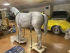 This stunning life-size horse statue is a must-have for any animal lover. Crafted from high-quality aluminum, this statue is both durable and weatherproof, ensuring it will withstand the elements for years to come. The brushed aluminum finish gives it a sleek and modern look that will complement any home or garden decor. Standing at 71 inches tall and 31 inches wide, this statue is perfect for indoor and outdoor display. Whether you're looking to add a touch of elegance to your living room or create a focal point for your garden, this horse statue is sure to impress. With its intricate details and realistic design, it's no wonder why this statue is a popular choice among collectors and enthusiasts alike.