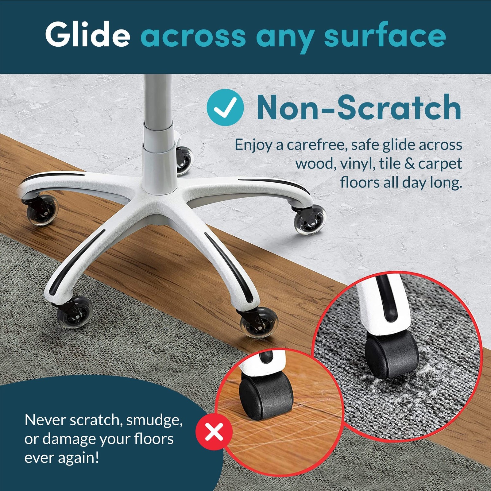 Lifelong Original Office Chair Wheels (As Seen On CNN) Replacement Rubber Chair Casters for Hardwood Floors and Carpet, Set of 5, Heavy Duty Casters for Chairs to Replace Office Chair Mats - Fits 98% Product Details Color: Clear Size: 3 Inch Brand: Lifelong MPN: BL-2374 UPC: 739027542810 EAN: 0739027542810 Color: Clear Brand: Lifelong Material: steel, precision ball bearings, polyurethane Unit Count: 5 Count Item Weight: 2.76 Pounds Mounting Type: Stem Mount Load Capacity: 650 Pounds Caster Type: Swivel Surface Recommendation: Multi-Surface Wheel Width: 1 Inches UPC: 739027542810 Item dimensions L x W x H: 6 x 3 x 4.5 inches Manufacturer: Lifelong Product Dimensions: 6 x 3 x 4.5 inches Item Weight: 2.76 pounds Item model number: BL-2374 Date First Available: May 25, 2016 THE LAST OFFICE CHAIR WHEELS YOU'LL NEED Not all chair casters are created equal. Our heavy-duty chair wheels are made of industrial-grade steel, precision ball bearings, and durable polyurethane chair casters. They are extremely resistant to compression and wear. They can withstand long-term daily use without being damaged or deformed, providing long-term stable support for your rolling chair. DESK CHAIR MAT WILL NOT BE NEEDED ANYMORE Our desk chair wheels replacement will NEVER scratch, smudge or damage your floors. Enjoy a carefree, safe glide across wood, laminate, vinyl, tile, mat, carpet and hardwood floors all day long. P.S. Regarding the smooth rolling on carpet it depends on the pile carpet that you have, some roll better and some arent as smooth. High pile carpet usually rolls less smooth than low pile. REPLACEMENT FOR MOST OFFICE CHAIRS Rest assured that our office chair wheels are compatible with almost any rolling chair (please check the size of your wheel stubs before ordering). IMPORTANT: NOT compatible with IKEA chairs and not either with some off brand chairs. (our stem size is 7/16" x 7/8") SMOOTH GLIDING IS AS QUIET AS A MOUSE A squeaky, rickety office chair wheel is a telltale sign that theyre cheap and poorly made. Youll slide and glide around in total silence with our roller casters. RELIABLE HEAVY-DUTY CASTERS This uniquely designed office chair wheels are carefully crafted from strong materials and has extremely powerful load-bearing performance, which can bear up to 650 pounds. These rubber chair wheels can easily cope with various usage conditions, providing sturdy and reliable load-bearing protection for your office activities and daily life.