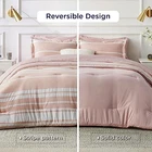 Return Policy Fast Delivery Trusted seller Light Pink Comforter Set Queen 7 Pieces, Light Pink White Striped Bedding Sets All Season Bed in a Bag, 2 Pillow Shams, Flat Sheet, Fitted Sheet and 2 Pillowcases Product Description OEKO-TEX Certified: This queen size bedding set is Standard 100 by OEKO-TEX certified for meeting high safety standards and is free from harmful materials, providing sleepers with assured quality. Easy Care: The double stripe queen comforter set is easy to clean. Simply machine wash cold without chlorine based bleach and tumble dry low to make it fresh and new again. High-Quality Fill: Our all-season bedding set is filled with a fluffy 240 GSM fiber fill that is extra airy and fluffy, providing a cloud-like sleeping experience to cozy sleepers. Elegant Design: The stripe pattern on this bed-in-a-bag set conveys a modern minimalist appeal that coordinates with various home decor styles, adding more aesthetic and coziness to your bedroom. What You Get: The Bed in a bag queen size complete set includes 1 Comforter (90" x 90"), 2 Pillowcases (20" x 30"), 2 Pillow Shams (20" x 26"+2"), 1 Fitted Sheet (60" x 80" + 14"), 1 Flat Sheet (90" x 102") Shipping Returns Payment Shipping Shipping is FREE to all addresses other than APO/PO boxes in the lower 48 states. All our stock ships from US-based warehouses. Shipped via USPS or UPS (depending on location and package weight) Unless stated otherwise, all orders will ship within 24-72 hours of your payment being processed. Check our feedback to see the great reviews of FAST shipping we offer. Returns Seller does not accept returns Payment We currently accept payment via eBay managed payments only. Once payment is cleared, we will dispatch your shipment within 1-3 business days. Please refer to the "Shipping" tab for more information regarding shipping speed to your destination.