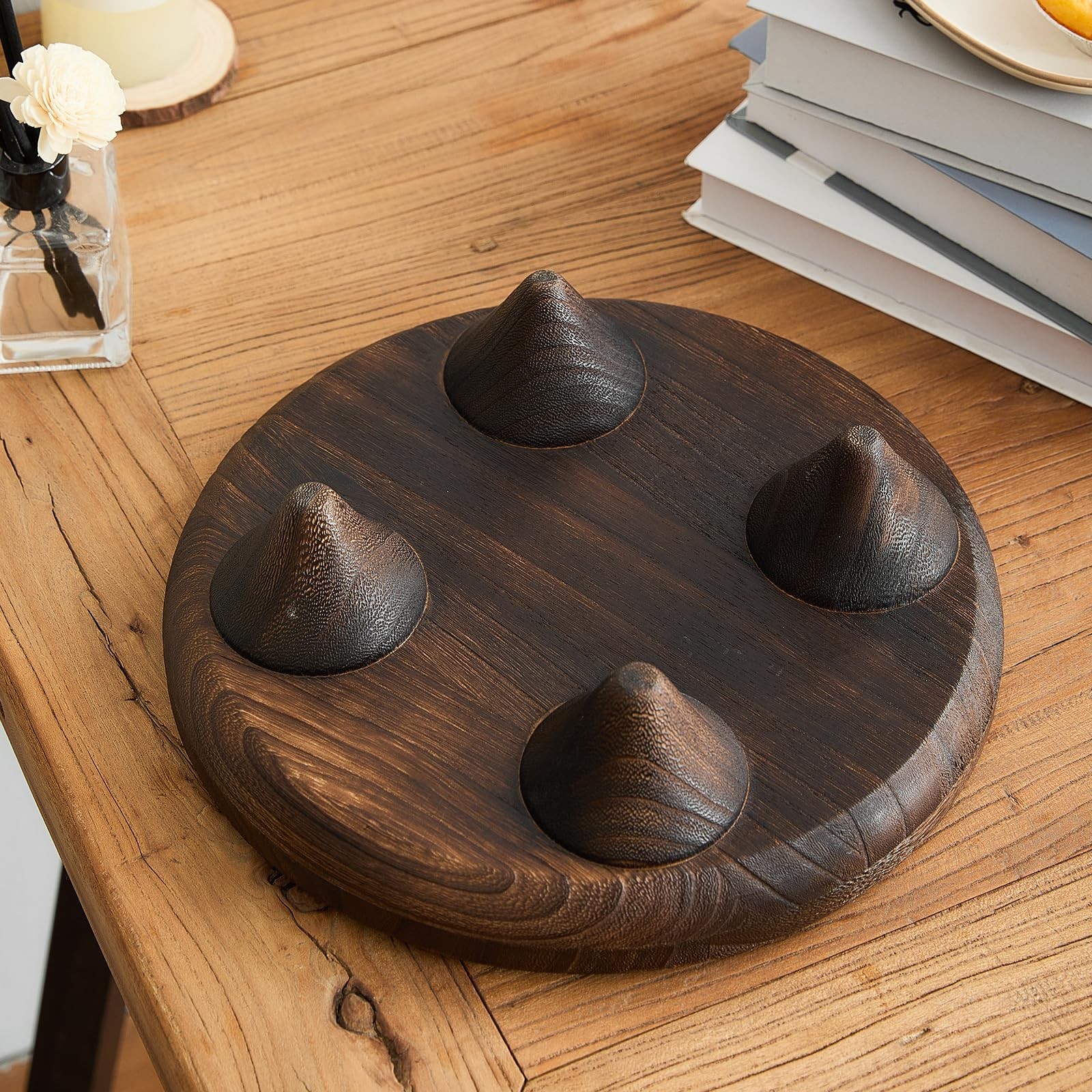 Light Wood Round Footed Serving Tray,Wabi Sabi Decor,Brown Decorative,Candle Tray,Wooden Display Riser Product Details Color: Brown Brand: GZQWDC MPN: Tray-1 UPC: 753980628114 EAN: 0753980628114 Brand: GZQWDC Color: Brown Material: Wood Product Dimensions: 11.8"L x 11.8"W x 3.6"H Shape: Round Brand: GZQWDC Color: Brown Material: Wood Product Dimensions: 11.8"L x 11.8"W x 3.6"H Shape: Round Tray Type: Serving Tray Special Feature: Four-legged Design, Raised Feet Style: Wabi Sabi Finish Type: Brushed Recommended Uses For Product: Serving Number of Items: 1 Product Care Instructions: Hand Wash Only Theme: Wabi Sabi Is Dishwasher Safe: No UPC: 753980628114 Manufacturer: NBGZ Item Weight: 1.54 pounds Item model number: Tray-1 Date First Available: February 26, 2025 DESIGN: Elegant round serving tray with raised edges and decorative feet, perfect for displaying fruits, snacks, or decorative items CONSTRUCTION: Solid wood construction with a rich dark brown finish that adds sophistication to any table setting or display VERSATILITY: Multi-purpose tray suitable for serving meals, organizing items, or creating eye-catching centerpieces DIMENSIONS: Spacious oval surface provides ample room for arranging items while maintaining a sleek profile MAINTENANCE: Smooth finish allows for easy cleaning with a dry cloth to maintain its beautiful appearance Add a touch of rustic elegance to your dining experience with this beautifully crafted oval wooden serving tray. The dark brown finish showcases the natural wood grain patterns while providing a sophisticated backdrop for displaying fruits, appetizers, or decorative items. This versatile tray features a sleek, elevated design with subtle feet that protect your surfaces while creating an eye-catching presentation. The smooth, curved edges and generous depth make it perfect for serving guests or creating stunning centerpieces. Whether used for practical serving purposes or as a decorative accent piece, this tray brings both functionality and style to any setting. The rich, deep color options of charred brown or black allow you to match your existing decor while maintaining a timeless appeal. The durable construction ensures this tray will be a lasting addition to your home entertaining collection. Perfect for both casual family gatherings and formal entertaining, this serving tray combines traditional craftsmanship with contemporary style.