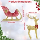 Reindeer and Santa sleigh are always the classic element in Christmas. Our lighted Christmas reindeer and sleigh create a unique festive, captivating every guest that arrives. Adorned with bows and strings. Designed with 8 light modes for appealing lighted display. Easy to install. A perfect Christmas decoration for both indoor and outdoor use. Take them to attract your family, friends, neighbors’ attention and enjoy their praise! Feature: Merry Christmas: Reindeer and Santa sleigh are always the classic element in Christmas. The lighted Christmas reindeer and sleigh will add a charming to your holiday decor. With bow design and red & gold, the gentle and adorable sleigh creates a unique festive, captivating every guest that comes. 8 Lighting Modes: This sleigh and reindeer outdoor decoration comes with a 16.97ft string light, glowing up beautiful warm yellow lights. You can freely choose 8 lighting modes, including Combination, In Wave, Sequential, Slo Glo, Chasing/Flash, Slow Fade,Twinkle/Flash and Steady On. Brighten up your Christmas decor by creating an eye-catching lighted outdoor display in your yard or porch. Reusable Decoration: Unlike those disposable decorations, these lighted reindeer and sleigh are made of sturdy iron frame, moisture-proof, rustproof, wear-resistant. A reusable and appealing decoration for every Christmas! Easy To Install: All needed tools is in the package. Just follow the detailed instruction, you can quickly install these lovely Christmas reindeer and sleigh. Indoor & Outdoor Display: A perfect Christmas decoration for both indoor and outdoor use, suitable for party, office, living room, bedroom, garden, patio, yard, lawn and so on. Take them to attract your family, friends, neighbors’ attention and enjoy their praise! Specification: Product Type: Lighted Christmas Reindeer & Sleigh Color: Gold+Red Material: 304 Stainless Steel Support Plates+Iron Frame Power Supply: 3Pcs AA Batteries(Not Included) 8 Lighting Modes: Combination, In Wave, Sequential, Slo Glo, Chasing/Flash, Slow Fade,Twinkle/Flash, Steady On Light Color: Warm Yellow Distance Between 2 Beads: 10cm/3.94in Item Size & Weight: *Reindeer: 55.2x103cm/21.73x40.55in; 550g/1.21 lbs *Sleigh: 83x60cm/32.68x23.62in; 700g/1.54 lbs Package Size: 43*33*5cm/16.93*12.99*1.97in Package Weight: 1632g/3.6lbs PackageContents: 1× Reindeer 1×Sleigh 2×Bows 4× Triangle Stake Plates 1× Screwdriver 1 Bag×Screws & Nuts 1× User Manual