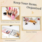 Love this vanity set! The 3-color lighting is perfect for any makeup look, and the touch control makes it so easy to adjust. Tons of storage with the drawers and acrylic organizer—everything stays neat. The mirror gives a flawless reflection, and the chair is super comfy. Stylish and functional, it’s a game-changer for my routine!