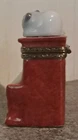The Limoges trinket box piano with cat and book is a charming and whimsical collectible item featuring intricate details and a unique design. The trinket box takes the shape of a book, making it a creative and playful addition to any collection. With a piano and cat as the main subjects, this collectible is sure to stand out and bring joy to its new owner. The boxed packaging adds a touch of luxury to this decorative piece, making it a perfect gift for any cat lover or avid collector.