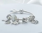 Linx snake chain style charm bracelet in 925 sterling silver, with a ball clasp, featuring the signature Linx logo. This beautiful bracelet features 7 Linx charms also in 925 Sterling silver. Size 7.5 Bracelet is also available in sizes 6.3 (toddler size), 6.7, 7.1, 7.9, and 8.3. Should you require one of these sizes, please message us prior to purchasing and we will create a listing for you in your requested size. Please remember to add an additional inch to the measurement of your wrist in order to allow room for your charms, as the charms will cause the bracelet to fit a bit tighter. Bracelet is new with tags and will also come with the original Linx velvet jewelry pouch, and Linx sterling silver polishing cloth.