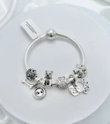 Linx Silver Snake Chain Bracelet with Pitbull Themed Charms 925 Sterling Silver