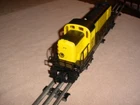 Lionel Alco RS-3 ENGINE Heavy Duty Construction Zone Train W/4 Freight Car Set. NO BOXES. FOR 0-027 GAUGE TRAIN LAYOUTS. ENGINE TESTED AND RUNS FORWARD ONLY (NO REVERSE OFFERED), RUNNING LIGHT`S WORK GREAT , RUNS STRONG. COMES WITH THREE GONDOLA CARS , ONE WITH LIONEL CANISTERS. GRANDE TRUNK CABOOSE # 9063. LOOK`S NEW BUT LISTING AS USED. SET IN GREAT CONDITION.