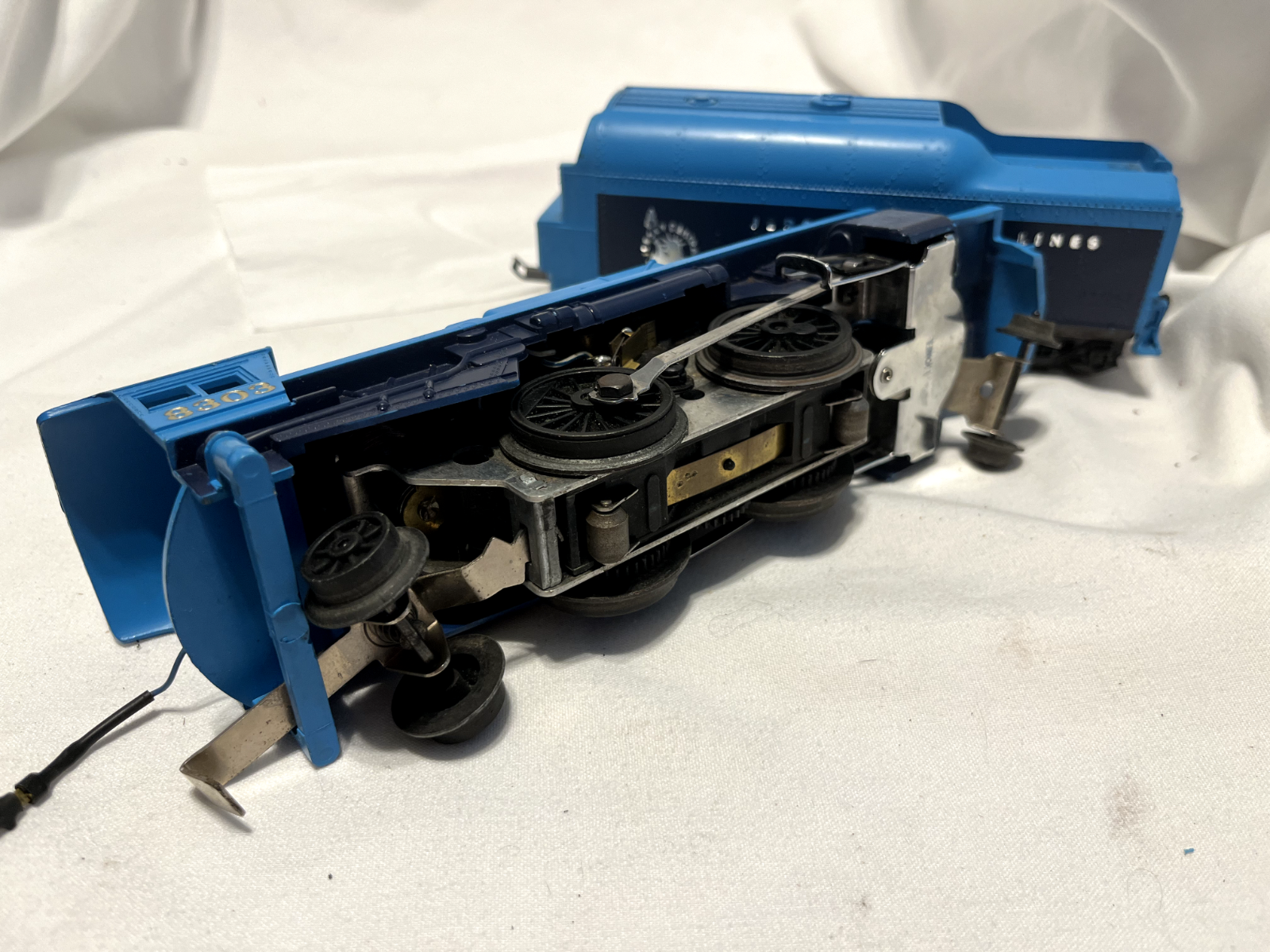 Lionel Jersey Central Lines O Gauge 8303 Engine & Tender. In good cosmetic condition, has a few very minor flaws. It does run, needs cleaned. Smoke works good. The connector that connects the 2 trains is pulled out and needs repaired. It does have a speaker, see last picture. Please look closely at all the pictures. Check out our store for more trains, we do combine shipping. I started selling on eBay in 1997, that account is now DGD_Surplus and is my full time business account. This account which uses my original user name is my personal account. I use it to sell my hobby and personal items in my spare time. I hope you find something you like. If you have a problem with something I have sold I hope you reach out to me prior to leaving feedback as it is my goal for my customers to be satisfied with their transaction. Dan Batson