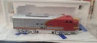 This is a Lionel 6-24568 O Gauge Santa Fe FT A Unit Diesel Locomotive #158. This locomotive features dual motors, forward/neutral/reverse, an operating headlight, die-cast metal trucks, operating couplers, train sounds sound system, and metal wheels. This has never been run and has the original packing and instructions. Please look carefully at all photos to confirm the description provided. Please note that the box has a tear and piece missing from one of the corners (Please note from picture). I have been a TCA member for 48 years and a LCCA member for 45 years.