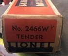 The Lionel PostWar 1666 Locomotive and 2466W Tender are vintage model trains from 1947, featuring a steam locomotive with a 2-6-2 wheel configuration and diecast material construction. These two pieces come with their original boxes and are part of the Three-Rail System, suitable for O-27 gauge model railroads. Additionally, the locomotive and tender have light and sound functions, making them a unique and nostalgic addition to any collection of model trains. Both boxes have damage