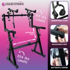 Upgrade Your Music Setup with the Liquid Stands Z-Style Keyboard Stand! Whether you're a professional musician or just starting, the Liquid Stands Heavy-Duty Z-Style Keyboard Stand is the perfect blend of strength, versatility, and comfort. Designed to hold everything from lightweight synths to the heaviest 250-lb keyboards, this stand will transform your playing experience. Why You Need It: Fits All Your Gear : Fully adjustable height and width make it compatible with keyboards, DJ mixers, turntables, and more. Perfect for any setup! Play Your Way : Whether you prefer sitting or standing, this stand adapts to your needs for maximum comfort and visibility. Unmatched Stability : The reinforced Z-style frame ensures your equipment stays secure while anti-slip pads protect your gear and floors. Expand Your Options : A 2-tier extension gives you room for monitors, mics, or additional gear—perfect for multi-instrumentalists. What’s In It for You? Effortless Adjustments : Spring-loaded locks make it easy to set your perfect height and width. Built to Last : Made from high-quality steel, this stand is sturdy and durable for years of use. Portable Convenience : Lightweight and easy to assemble, it’s ideal for gigging musicians or studio setups. Bonus Features You’ll Love: Adjustable height and width: Great for your piano, DJ mixers, turntables, synths, and midi keyboards. Liquid Stands' keyboard stand is compatible with all major keyboard brands. Double Your Keyboard's Reach: Fully adjustable keyboard stand extension with a width from 22.5 - 33.5" and height from 14.0-21.5". Adjust angles for optimal comfort and ergonomics. Play while seated or standing: With this stand, users will have the option to make music while standing or while sitting on a bench, seat, or stool. Heavy Duty: Weight limit of 250 lbs. on the base stand and 60 lbs. on the top tier. Great for use on stage, at home, or in the studio. Accessories: Each keyboard stand includes adjustable feet, anti-skid foam pads, a headphone hook, and anchoring straps that attach the keyboard to the stand for extra stability and protection. FULL 10-year warranty by a US company included: Please be aware that the warranty terms on items offered for sale by third party Marketplace sellers may differ from those displayed in this section (if any). To confirm warranty terms on an item offered for sale by a third party Marketplace seller, please use the 'Contact seller' feature on the third party Marketplace seller's information page and request the item's warranty terms prior to purchase.