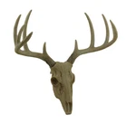 Impressive Size - Measuring 15.5 inches high, 14.5 inches long, and 9.75 inches wide, these faux deer antlers have a commanding presence on your wall. Realistic Craftsmanship - Creatively cast in resin, these antlers boast true-to-life details, capturing the essence of natural deer antlers in exquisite detail. Hand-Painted Authenticity - The hand-painted natural finish includes aged effects, creating depth and shadow, ensuring a lifelike appearance that adds authenticity to your decor. Our eBay Store About Us Add to Favorite Sellers Little Bucky - 15-Inch Wall Mounted Faux Deer Skull With 10-Point Antlers - Hand-Painted Aged Finish - Lodge or Western Charm for Your Rustic Living Space Impressive Size - Measuring 15.5 inches high, 14.5 inches long, and 9.75 inches wide, these faux deer antlers have a commanding presence on your wall. Realistic Craftsmanship - Creatively cast in resin, these antlers boast true-to-life details, capturing the essence of natural deer antlers in exquisite detail. Hand-Painted Authenticity - The hand-painted natural finish includes aged effects, creating depth and shadow, ensuring a lifelike appearance that adds authenticity to your decor. Easy Mounting - Arriving ready to hang, these antlers are hassle-free to install and seamlessly blend with any trophy wall, making them a perfect addition to your rustic, lodge, or outdoorsy inspired space. Rustic Charm - These antlers are a must-have in any rustic living room, office, or inn, exuding the charm of the great outdoors and adding a touch of wilderness to your interior design. Transform your living space into a rustic haven with our lifelike deer antler wall decor. This set of antlers, with their majestic ten-point design and intricately detailed five tines on each, brings the essence of the wild indoors. Crafted from high-quality resin, these faux antlers capture the spirit of real animal horns. Each piece is meticulously hand-painted, incorporating authentic aging effects for depth and shading, ensuring a remarkably realistic appearance. These antlers make a striking addition to any room, adding a touch of rustic elegance to your home, office, inn, or cabin. Elevate your interior decor with this conversation-starting piece, whether it's mounted in your stairwell, above your fireplace, or showcased in your workspace. Their versatile design allows them to seamlessly blend with existing trophy displays, enhancing the overall aesthetic of your space. Embrace the spirit of the hunt without harm to any animal; these faux antlers provide the allure of genuine taxidermy without the ethical concerns. Perfect for hunters, nature enthusiasts, or anyone seeking unique wall decor, these lifelike antlers are a testament to meticulous craftsmanship and attention to detail, bringing the timeless charm of the outdoors into your home. Product Details Color Beige Height 15.5 Length 14.5 Weight 2.2 LB