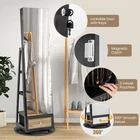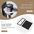 Lockable 360° Swivel Jewelry Organizer Cabinet W/LED Lights & Full-Length Mirror ● Perfect Jewelry Storage Solution: Equipped with 108 earring slots, 36 earring stud holes, 36 necklace hooks, 1 acrylic cosmetics and lipstick box, 65 ring slots, 3 bracelet rods, 2 removable acrylic storage shelves, 1 fixed storage shelf, 4 acrylic drawers, 1 large drawer, this jewelry armoire can keep all your treasures well organized. ● Multifunctional 3 in 1 Design: The floor standing jewelry cabinet features a 55" x 14.5" full length and full screen mirror to provide you with a wide field of view from head to toe. What's more, with 3 additional shelves backside, the jewelry armoire can also serve as a storage rack or display stand. ● Built-in Mirror and LED Lights: There is a small vanity mirror inside of the jewelry cabinet. Along with the bright LED lighting, it is convenient for you to make up. The lights are powered by 3 x AAA batteries (not included) . Besides, the foldable acrylic makeup shelf can be flipped down to place cosmetics during your makeup. ● Upgraded Convenience and Chic Design: This mirrored jewelry cabinet comes with a hair dryer rack, making it convenient to place and access the hairdryer when dressing up. In addition, the large foldable fabric drawer at the bottom with a front acrylic mirror panel design adds fashion. ● 360° Smooth Swivel and Safety Lock: Thanks to the flexible 360° rotating design, you can easily fetch items stored at the back of the jewelry cabinet. Plus, the jewelry armoire features a lockable door with keys to keep your belongings safe, while the magnetic catch design prevents the door from unwanted opening. Color: Black Material: MDF, Glass, Acrylic Product Dimension: 22" x 64.5" External Mirror Size: 55" x 14.5" Internal Mirror Size: 13.6" x 9.4" Large Drawer Size: 14.2" x 11.8" x 5.7" Small Drawer Size: 6.5" x 2.4" x 2.6" Inner Diameter of Hair Dryer Rack: 3.5" Thickness of Cabinet: 4" Net Weight: 54 lbs
