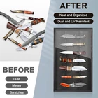 This knife display case is a must-have for collectors! The sturdy wooden frame and clear acrylic door keep my knives dust-free while showcasing them beautifully. The lock adds extra security, and the compact size fits perfectly on my wall. Holds seven knives securely with protective slots—great quality and looks sleek!