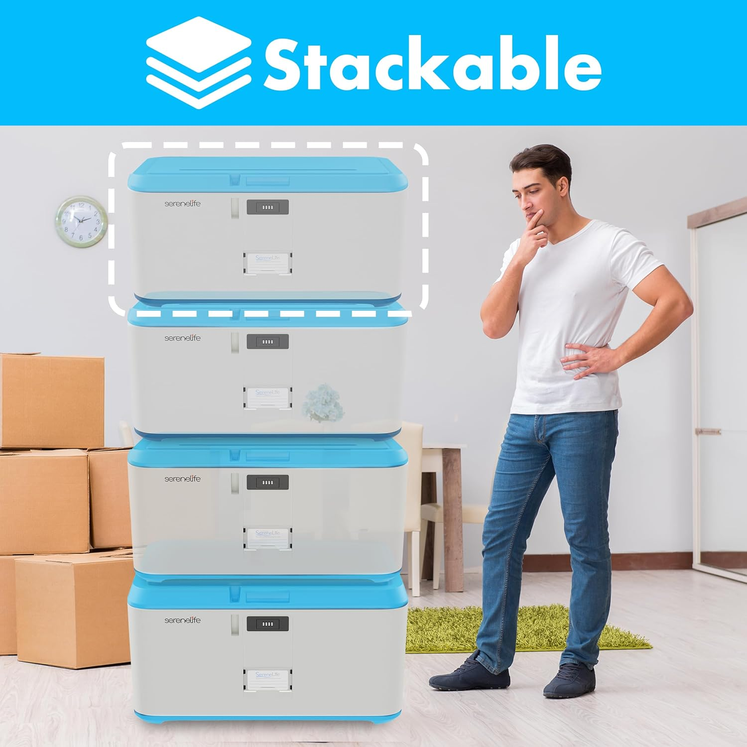 Store New Arrivals Add to Favorite View Feedback Contact Lockable Storage Box, 21 Gallon Capacity Storage Trunk with Combination Lock, Locking Container Bin for Organization Description Item model number SLSBIN21LB Storage Volume 79.49 Liters Style Contemporary Capacity 21 Gallons Number of Items 1 Closure Type Flip Top Pattern Solid Country of Origin China Unit Count 1.0 Count Number of Compartments 1 Batteries required No Material Acrylonitrile Butadiene Styrene Maximum Weight Recommendation 100 Pounds Item Package Quantity 1 Water Resistance Level Not Water Resistant Item Weight 12.67 pounds Opening Mechanism Hinge Special Feature Durable Color Light Blue Shape Rectangular Recommended Uses For Product Toy storage, For storage, Shoe storage, Tools Product Dimensions 23.63"L x 16.54"W x 12.2"H Number of pieces 1 21 GALLON CAPACITY: Supporting up to 66 lbs weight & a maximum capacity of 21 gallons, this locking storage box is spacious enough for you to stash various items. The mini storage trunk with lock has full dimensions of 12.25" x 16.5" x 23.5" inches 4 DIGIT LOCK COMBINATION: No need to worry about losing any key as this lockable box utilizes a 4 digit integrated combination lock for security that supports user defined number passcode setting. Can be used for item storage or food lock box DURABLE & HEAVY DUTY: This 5-gallon locking trunk has an impact-resistant, scratch-resistant, & stain-resistant housing. Unlike most lockable storage containers, this storage with lock is made to last for home/office use, parties, or the beach EASY ACCESS LIFT-TOP HINGES: Made with your convenience in mind, this storage box with lock is designed with easy access lift-top hinges for a smoother feel during use. They can also be stackable allowing them to a convenient storage box solution IDEAL FOR HOME, OFFICE, CAMPING: Whether you want to organize items at home / office, or need storage for your beach vacation / camping, this lockable storage box will be able to accommodate your needs with its safe, rugged, and reliable construction Features: - Convenient Storage Box Solution - Integrated Combination Lock for Security - User-Defined Number Passcode Setting - Safe, Rugged, Reliable Construction - Heavy-Duty Impact Resistance - Anti-Scratch & Stain-Resistant Housing - Easy Access Lift-Top Hinges - Clean & Streamline Modern Style - Side Panel Carry Handle Grips - Perfect for Home, Office, School, Business & Mobile Use What's in the Box: - Locking Storage Container Bin Technical Specs: - Internal Storage Capacity: 21 Gallon/78 Liter - Maximum Support Weight: 100+ lbs. - Construction Material: Reinforced Engineered ABS - Pass Code Type: Manual 4-Digit, Numerical - Dimensions: 12.21'' x 16.54'' x 23.63'' -inches - Internal Dimensions: 9.85'' x 16.15'' x 23.6'' -inches ABOUT US We offer the best prices around on high quality products. Our E-store includes media such as books, movies, music and games while offering electronics, toys, sporting apparel, clothing, tools, general home, garden items and more. SHIPPING We are always working hard to ensure your package arrives as soon as possible. Please understand that some factors like weather, high postal traffic, and the performance of shipping companies are outside of our control. We offer free shipping to the lower 48 states and ship within 2 business days of payment, usually sooner. We do not accept P.O. Boxes. Please provide a physical address. For shipping outside of the continental USA, we only use eBay's Global Shipping Program.The item is shipped to KY and then sent to the rest of the world. International customers are responsible for all duties and taxes. Continue to check out in order to calculate costs for shipping the item to your country. Messages regarding eBay's Global Shipping Program MUST be directed at eBay EXCLUSIVELY. RETURNS We offer a 30-Day Return Policy on items which you are not completely satisfied with. You have the option for a full-refund or an exchange of the item. No returns are available on items shipped outside of the USA. PAYMENT We accept PayPal. CONTACT US This page content is yet to come Please ad us to your favorite seller and visit again later Thank You CUSTOMER SATISFACTION We try our very best to make sure every customer is completely satisfied. If there's a problem, message us! We're happy to help. WE ACCEPT Copyright © 2021 AutoDS. | All Rights Reserved