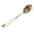 Following the lead of Martha's best-selling Lockton Cookware collection, this 5-piece Prep and Serve Kitchen Tool Set from also features the same gold and linen finish for a match made in colorway heaven. Stainless steel construction provides long-lasting use and service, suitable for making everyday meals and seasonal favorites. Gold-toned finish adds a quiet but luxurious look to any culinary space. This set includes nylon tools as well - crafted to help prevent scratches and scraping on nonstick surfaces, enameled interiors and other delicate finishes. Heat-resistant handles offer an ergonomic shape for a comfortable grip. These prep-and-serve utensils answer to every home cook's search for the right set of tools to save time in the kitchen and help serve the best flavors and textures to the table. Hand wash only. Embrace thoughtfully designed home essentials from America’s most trusted lifestyle expert, . Step into her exquisite and iconic world filled with a curation of high-quality products to prep, cook, bake, serve, and enjoy. All crafted to elevate everyday homemaking and seasonal entertaining, these kitchen and tabletop pieces blend style and performance, inspiring avid hosts and home cooks to set stylish tables, serve up delicious meals, and create spectacular memories. A COMPLETE SET INCLUDES: One stainless steel spoon, one stainless steel ladle, one nylon skimmer, one nylon scraper and one nylon solid turner. Following the lead of Martha's best-selling Lockton cookware collection, this kitchen tool set features the same gold and linen finish for a match made in colorway heaven. MADE FROM DURABLE STAINLESS STEEL: Polished stainless steel construction provides durability that lasts long and style that is never lackluster. Gilded finish gives these utensils (and your kitchen!) a deluxe upgrade. Stow them in a ceramic crock for a beautiful display of gold-toned tools on the countertop and easy access when it's time to cook and make something delicious. NONSTICK-FRIENDLY: Nylon utensils are safe to use on nonstick sufaces, enameled interiors and other delicate finishes. HEAT-RESISTANT HANDLES: Ergonomic heat-resistant handles in crisp white linen color provide a comfortable grip. CARE INSTRUCTIONS: Hand wash only.
