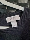 This Loft sweater in charcoal gray is a must-have for any woman's wardrobe. The 3/4 sleeves and crew neck make it perfect for any occasion, while the button-up back adds a touch of sophistication. Made of 100% cotton, it is both comfortable and stylish. The solid pattern and pullover style make it easy to pair with any outfit. This sweater is perfect for any woman looking for a versatile and stylish addition to their wardrobe.