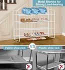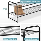 Return Policy Fast Delivery Trusted seller Long 2 Tier Shoe Rack for Closet Metal Wide Stackable Shoe Storage Organizer for Entryway, Bedroom, Floor, 18-Pairs Low Shoe Shelf, Black Product Description 【Long Shoe Rack for 18 Pairs of Shoes】 Size of metal shoe rack: 42.7"Wx11.4"D x18.7"H. Longer 2-tier shoe organizer for closet can store 18 pairs of shoes for men, women and kids, each tier wide enough storage for 6 pairs of men's sneakers, tennis shoes etc, extra bottom storage for flats, slippers and flip flops enough; 【The More Stable, the Better!】 Shoe rack for entryway made of anti-rust metal pipes and wired grid, strong load-bearing (each layer can bear about 11-15 lb), heavy duty shoe rack is different from the cloth shoe rack that sags obviously when shoes are put in; Also can store water bottles, drinks or small kitchen appliances; 【No More Messy for Boots】 The height of each tier is 8", fit knee boots, high heels well, it's no problem if you want store rain boots, because it is waterproof and easy to clean, just wiped with a towel. Stackable shoe rack keep your garage, hallway, dormitory, patio, entrance and mudroom room away from mess; 【Flexible Combination】 Use your imagination and according to space needs, you can vertically stack into a 4-tier adjustable shoe rack for store more shoes, instead of piling shoes in the corner. Shoe racks for bedroom closet also can remove 1 or 2 layers to fit high boots; 【Easy to Assemble】 Closet shoe rack comes with numbered parts and detailed illustrated instructions, simple structure design makes it very easy to assemble. If you have any questions about the install process of our shoe shelf, please contact us any time for free. Shipping Returns Payment Shipping Shipping is FREE to all addresses other than APO/PO boxes in the lower 48 states. All our stock ships from US-based warehouses. Shipped via USPS or UPS (depending on location and package weight) Unless stated otherwise, all orders will ship within 24-72 hours of your payment being processed. Check our feedback to see the great reviews of FAST shipping we offer. Returns Seller does not accept returns Payment We currently accept payment via eBay managed payments only. Once payment is cleared, we will dispatch your shipment within 1-3 business days. Please refer to the "Shipping" tab for more information regarding shipping speed to your destination.