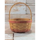 Longaberger 1998 Mother's Day Rings and Things Basket 7" x 3" with single stationary handle Right Handed Weaver From Smoke Free/Cat Friendly Home Keywords: wooden basket, handwoven basket, storage basket, decorative basket, round basket, handled basket, woven wood, rustic basket, farmhouse decor, organization, natural wood, red accent, home storage, Longaberger, Mother's Day, Ring and Things