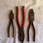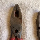 Selling is a vintage lot of three lineman pliers. These were found in a local estate and are used. The red handled one and the larger all steel one are unnamed unlabeled no manufacture name. The small all set set are kraeuter brand. The are high quality and operate fine. The jaws are crisp not showing lots of hard use. There is rust on all three they have been buffed. Let me know if you have any questions. I generally ship within two days of the completed sale. I generally ship USPS ground advantage.